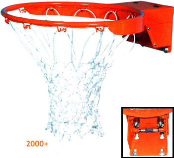 The most universally recognized and utilized goal in high school, university, and recreational gyms. Positive lock pressure setting allows precise fly-back action. Full steel wing brace design and continuous no-tie ring provides optimal rim strength. Goal is powder coated to protect from environmental elements. Front mount 5/8' x 18' single rim. Universal back plate accommodates 42' and 48' rectangular and fan shaped backboards. Includes GAW and mounting hardware. Recommended Backboards: Competition glass. Meets NCAA, NFHS, and NAIA specifications. Adjustable positive lock mechanism complies with NCAA rim elasticity rule.