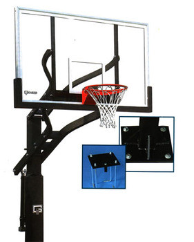 This system is ideal for residential and institutional use, especially in heavy play environments.Height adjustment actuator mechanism allows board to adjust from 7.5' to regulation 10'. 6' square heavy-gauge steel powder coated post provides superior strength and durability to the unit.Formed heavy-duty steel arms provide added board stability. Bolt-to-ground design allows for no-hassle installation and portability of unit.