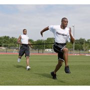 One athlete runs while the other provides resistance. Running positions can be alternated quickly for interval training. Use for forward running, side stepping, or back peddling. Includes 6inch nylon strap attached to two 3inch wide belts adjustable to 42inch waist, carry bag, and instructions. Compatible with Max Belt, sold separately.