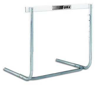 The official hurdle of many High School State Meets. The powder coated steel U-shaped single cross support design gives this hurdle significant advantages over conventional high school hurdles, including easy carriage and unhindered plyometric drills. 41" hurdle adjustable to 5 heights: 30", 33", 36", 39", and 42". Weighted base and a Lexan gateboard. Meets High School specifications. Ships unassembled.