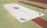 Keep your pit clean and dry with solid vinyl; or if rain is not an issue choose the vinyl mesh. Constructed of vinyl coated woven polyester. Fill bags with sand and slip into pouches for anchoring.