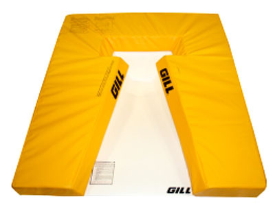 The new SafetyMax+ Vault Box Collar provides additional protection by padding exposed hard surfaces, features winged arms that go down into the vault box for added protection, and complies with ASTM standard F2949. Safety yellow color helps highlight the open area for planting the vaulting pole. The SafetyMax+ will work with any style of pole vault landing system.