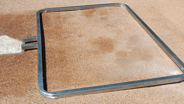 Heavy duty 1" square galvanized steel construction features a home plate guide for easy alignment. Available in Size 4’ x 6’ Baseball and Size: 3' x 7' Softball.