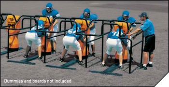 Work on firing off the line and proper hitting. Then halfway through the chute - climb and drive. Throughout the entire drill, the head is up without the danger of bumping into a crossbar.