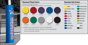 (Colors shown are approximate; actual color swatch available upon request. Additional vinyl colors are available for additional charge- please call for availability and pricing information.)