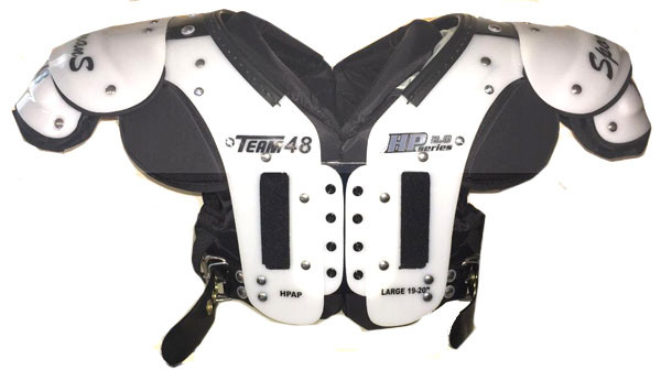 The Sportsman’s HP 3.0 SERIES shoulder pads offer traditional air management cushioning systems that provides the athlete with solid protection. Its lightweight, low profile design allows for greater visibility, agility and comfort.